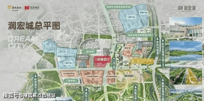 华润润宏城,位于光明区凤凰街道塘尾社区,深圳地铁13号线二期月亮路站(在建)上盖,深圳首个旧改体量建面超300万m²的项目。整体规划容积约380万㎡超大体量城市级,其中住宅约170万㎡,由华润置地和宏发集团联合打造,分多期多地块开发,其中一期就分4个地块开发,前期入市的是润雅园已经基本售罄,还剩少量4房在售,这次润臻园就是1期其中一个地块,后面还有二期三期,另外产业配套也分4期开发打造,还规划有3所九年制学校、2所18班幼儿园,3所12班幼儿园,3所9班幼儿园。