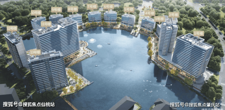 【楼栋分布】:建筑沿自然水域景观顺势布置