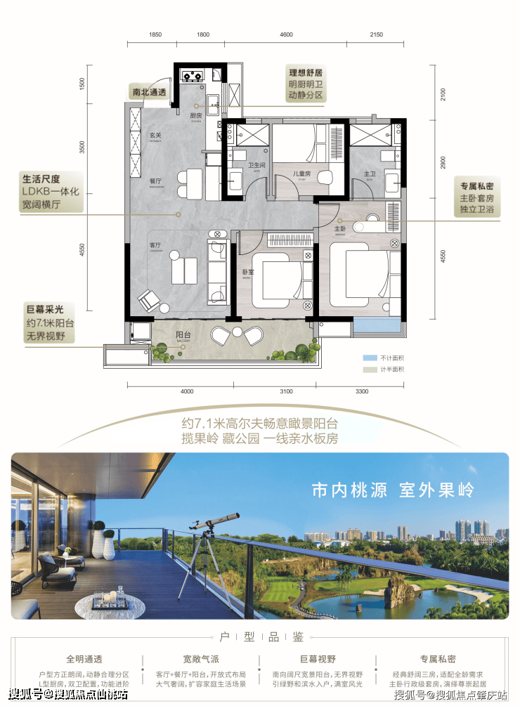 约4米客厅面宽、约7.1米宽景阳台、主卧套房设计等亮点倾心