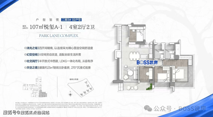 一是270度U型无遮挡柱的全画幅飘窗景观;