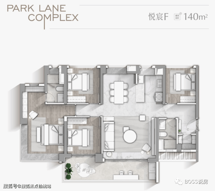 【一期悦宸F户型 建筑面积约140㎡】