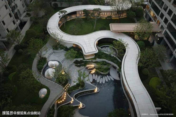 这个社区的规划质感十足,除了外接生态公园,内部还打造了下沉庭院;另外楼栋的架空层采用封闭与半封闭结合的策略,既保障了私密通透与恒温恒安。