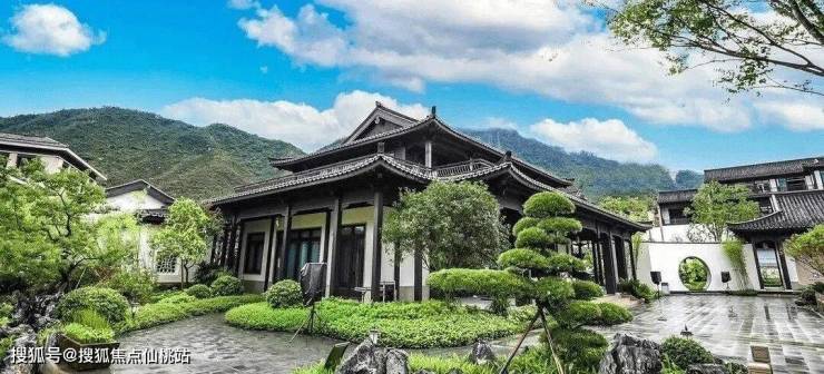 北入户,单边位,入户四水归堂,前后花园宽阔,围合式设计,传统中式建筑风格,文化底蕴浓厚,且私密性好,远眺凤凰山山景尽纳眼底