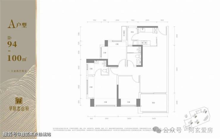 94-100㎡三房两厅两卫(平层):刚改友好,LDKB 一体化设计,3.6 米开间 + 双阳台,全南向 + 凸窗,得房率约 95%,适合三口之家。