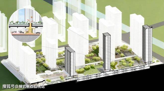为彻底消融城市与社区的界限,项目以“超级底盘”重构社区基座。通过抬高地库、整合车站与商业配套,将地下空间转化为多功能垂直枢纽。