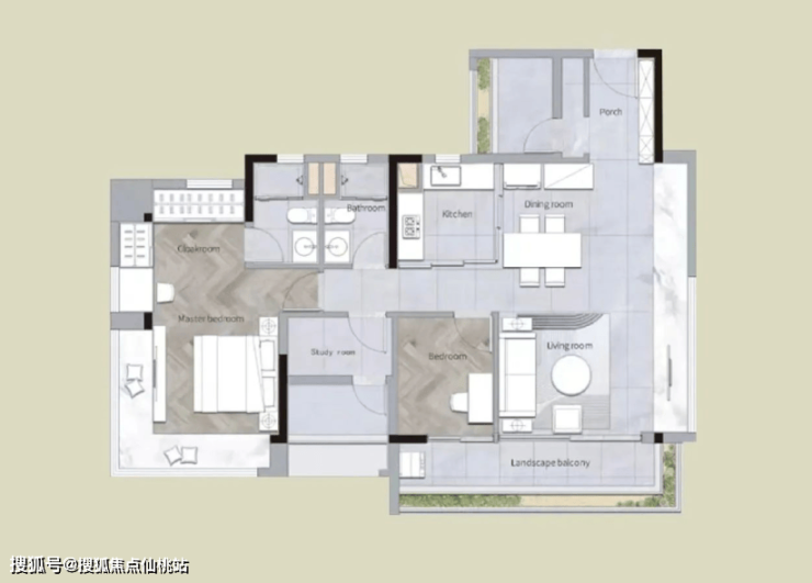 项目高层户型南北通透,面积段为87、115、136及143㎡,均为四面宽及以上产品。户型设计多维度考虑了现代化居家要求,如大面宽、LDK一体化、共享空间、主卧超大270°飘窗、独立衣帽间等创新元素,并利用新规政策实现户型赠送最大化,通过飘窗、花池、阳台改房间等方式,成为荔湾区首个项目使用率超100%准四代产品。