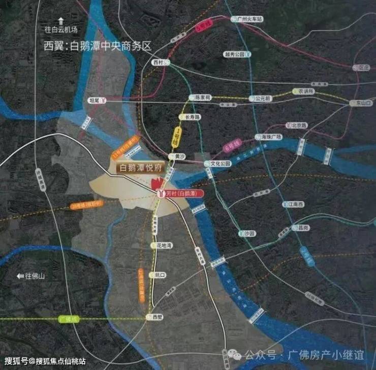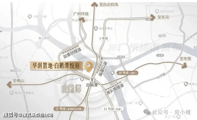 项目距离1号线白鹅潭TOD(芳村站)约400米,未来将有4条地铁交汇,包括1号线、11号线、22号线和28号线。