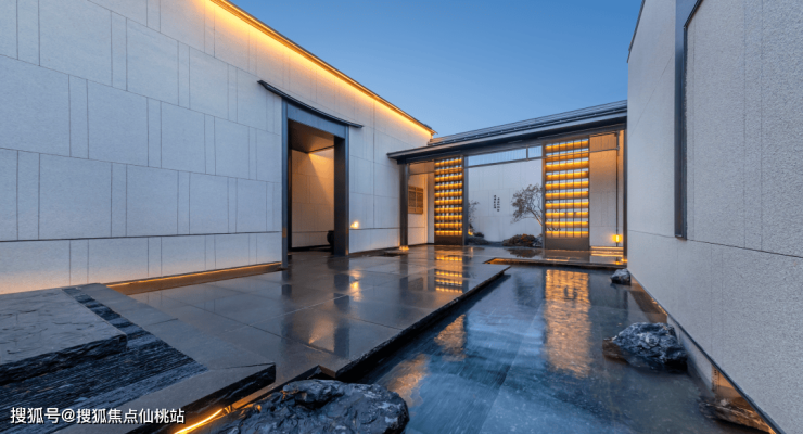 迭新营造三进归家礼序:一进坐隐山庐,致敬城市;二进画廊聴雨,致敬宾客,入“双燕”画境;三重森意墨染,致敬业主,移步易景,礼遇尊雅。