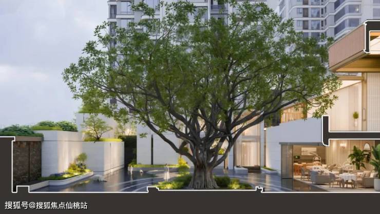 榕树广场不仅是回家的通道,更像是整个社区的呼吸中心。它联结着地上与地下,一侧是安静的下午茶室,另一侧藏着为孩子准备的童趣树屋。人们可以在这里停一停,让思绪从城市的喧闹中慢慢沉淀,重新找回生活的节奏。家,永远有一位“老人”守候。