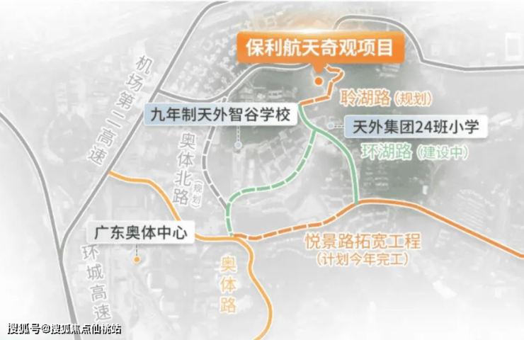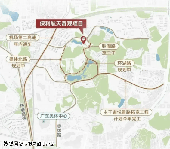 保利辰园湖境位于天河区大观路以东、奥体路以北,隶属于天河智谷片区