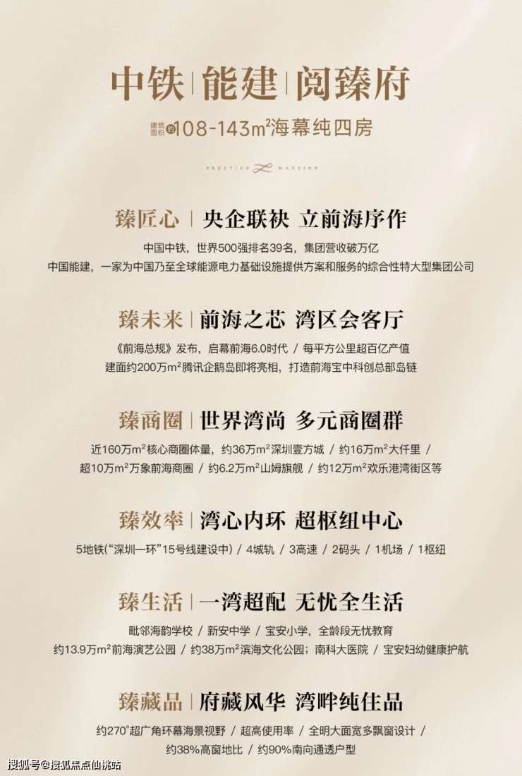 随着前海博物馆、摩天轮、湾区书城、滨海艺术中心、腾讯岛等城市地标陆续落成,前海宝中湾芯岸线逐步连点成湾,深圳“世界级”会客厅跃然呈现。约15公里的滨海岸线,将更多土地空间留给了公共建筑地标、总部办公、滨海公园,阅臻府如此滨海纯居作品则更稀少难觅。