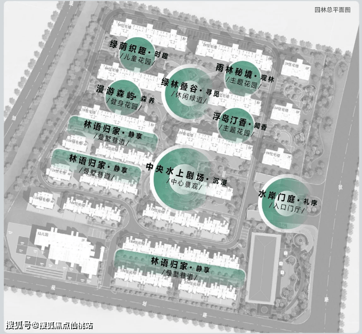 盛海棠以东方美学为魂,度假休闲为肌体在园林设计中融入岛屿、森林、海浪等自然元素规制两轴、三片区、多节点度假式园林