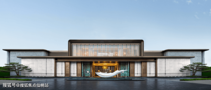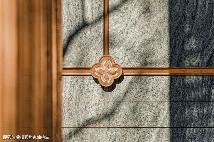 它的底蕴,远不止于“气派”,更藏着礼制和吉祥的寓意,灵感来自“玉岩书院”和“余荫山房”。余荫山房因邬彬家族“一门三举人,父子同登科”的佳话而闻名,项目取其“余荫”之寓意,寄托“登科及第、福荫后人”的家风传承。门前静立的“人间玉如意”雕塑,传递万事顺遂的祝愿。门墙选用温润如玉的雅博白石材,质感干净而大气,暗喻家族门风的清正端方;墙面精雕的百花纹样,则将礼制、祥瑞与风雅巧妙融为一体。
