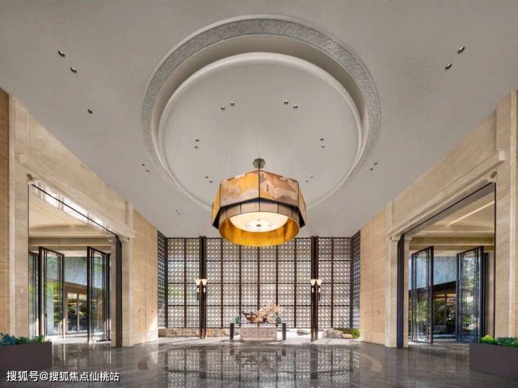 穿过门庭,便来到社区“能量中心”——星辰会所。其大堂名为“余荫山堂”,延续了岭南雅韵。空间理念源于《易经》泰卦,意在营造“藏风聚气,家宅永安”的和谐氛围。