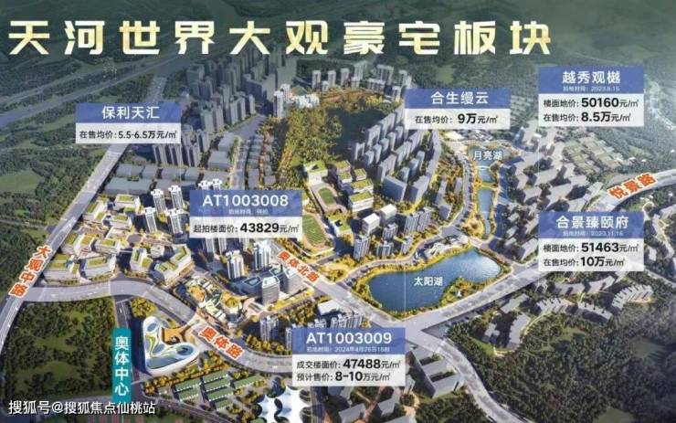 保利晨园湖境所在的板块叫世界大观,这里曾是华南最大规模的主题乐园之一,后来成为了天河的豪宅板块,定位基本上都是10万+的豪宅。