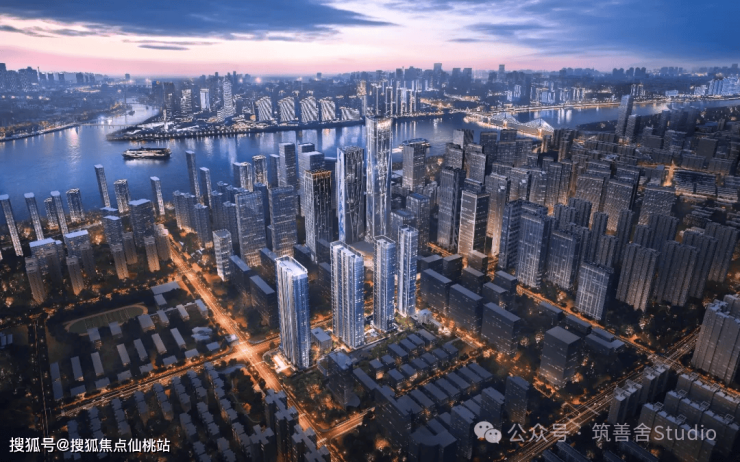矗立150米高的长沙河西地标住宅,顶部7米如皇冠般璀璨塔冠,引领城市天际线之巅。香槟金色铝板与270°弧形转角落地玻璃幕墙相映成趣,巧妙框取江畔风光。建筑巧妙融入曲线与曲面设计,流畅的体积与波动的曲线相得益彰,尽显灵动与细腻之美。香槟金线条的螺旋上升,营造出挺拔而富有节奏感的视觉冲击。