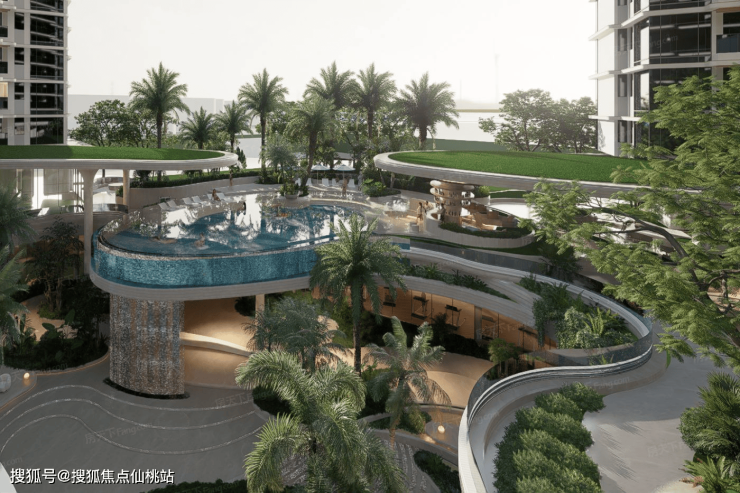 通过「潮起邀约」、「山水谷响」、「泳池派对」 、「椰风弦乐」、「林屿律动」、「鲲鹏海浪」、「雨林水韵」 等七大主题景观的层层递进,营造出移步景异、富有韵律的沉浸式体验,让每一次归家,都成为一场唤醒感官的诗意巡礼。