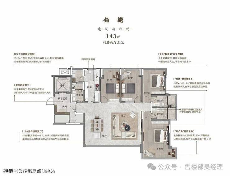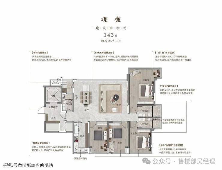(143已售罄,113㎡还有少量可选),5号楼(2梯3户)113㎡、143㎡少量楼层)、主推3号楼2梯2户(235㎡)。