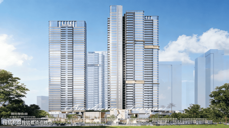 由3栋36-41F住宅塔楼和一栋局部2-3F商业组成,住宅总共410户,层高3.1米,3梯4户,停车位578辆,招商物业,9.5元/㎡/月,预计2028年3月精装交付。