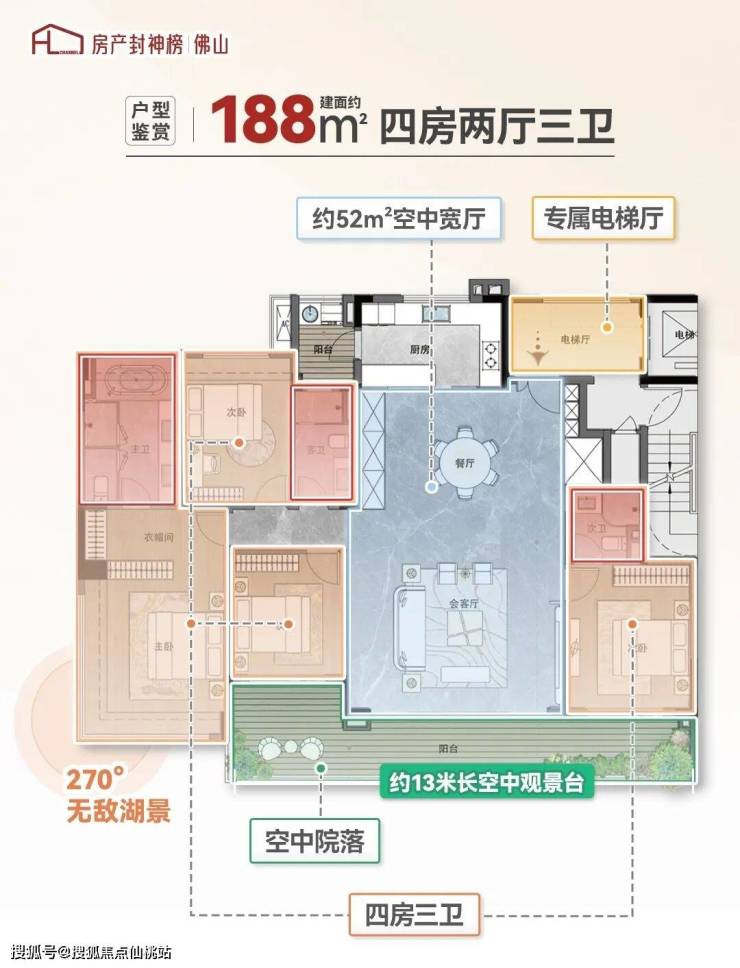 如果说,此前你对湖居生活的想象还停留在“窗外有景”,那么这套建面约188㎡产品,则将彻底打破认知边界:
