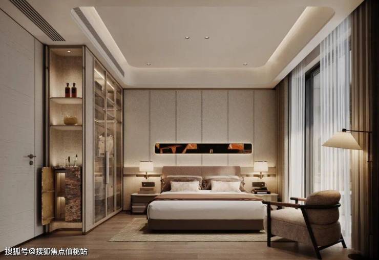 而主卧270°的转角飘窗,则彻底打破了空间与自然的界限,躺在床上即可环幕式饱览湖光晨昏,每一天都如同生活在风景画中。