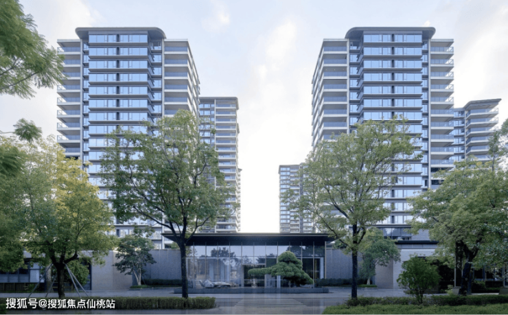 建筑并非孤立的存在,而是作为连接城市生活与自然野趣的媒介。在建筑群落与滨江公园之间,设计师精心塑造了一片自然过渡的场所。结合酒店式环岛落客区,定制化的门楼,6.4米超大雨篷挑檐,展现出恢弘大气的迎宾姿态;7.2米高的超大尺度超白高透玻璃,模糊了室内外的界限,将光影与景色引入,共同以一幅现代画境,营造出静谧、放松的生态归家序章。