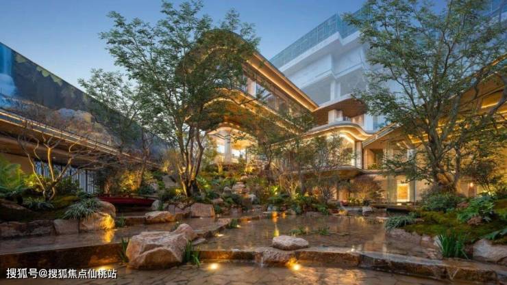一座约15米立体高差四层立体森谷中庭,在眼前铺展成山林、溪谷、跌瀑、落泉交织的如诗画卷。