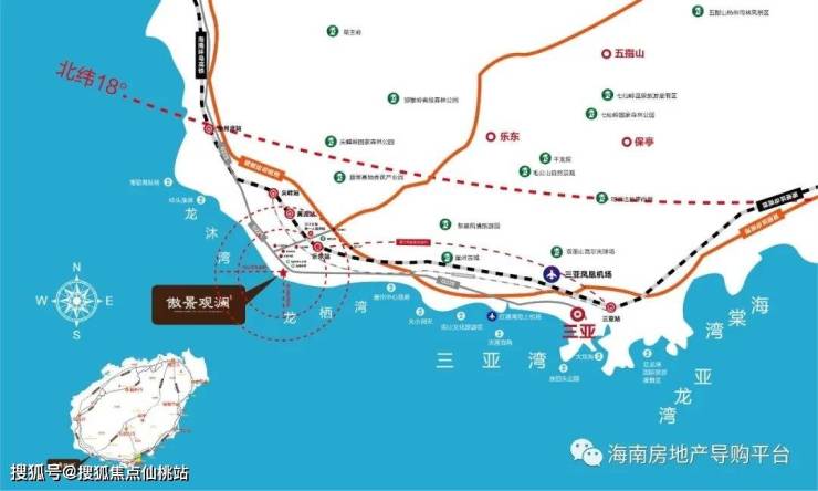 环岛高速 九所互通出入口距项目10分钟车程,40分钟车程到达凤凰机场,60分钟车程到达三亚市区,3小时到达海口;
