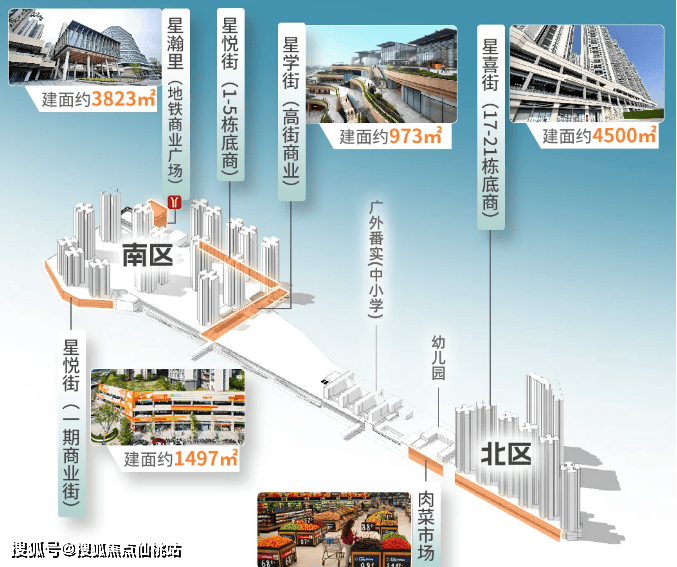 小区,拥有约1.5万㎡的社区商业,北区有底商、肉菜市场,南区则有地铁商业广场、商业街,以及多层的商业高街。每一户的业主,楼下都配套有商业,平时穿个拖鞋,下楼就能逛街、吃饭。