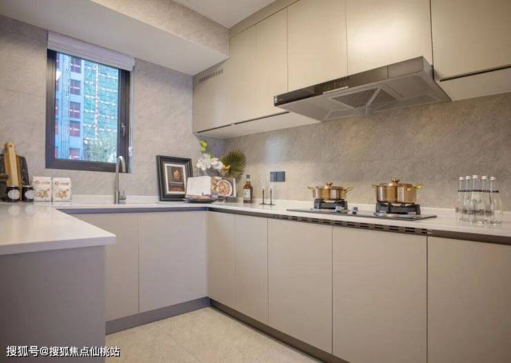 厨房采用U型厨房布局操作台面长,地柜吊柜储物空间充足,厨房电器设备规划合理,各处细节配置营造舒适与轻松自然的烹饪环境。