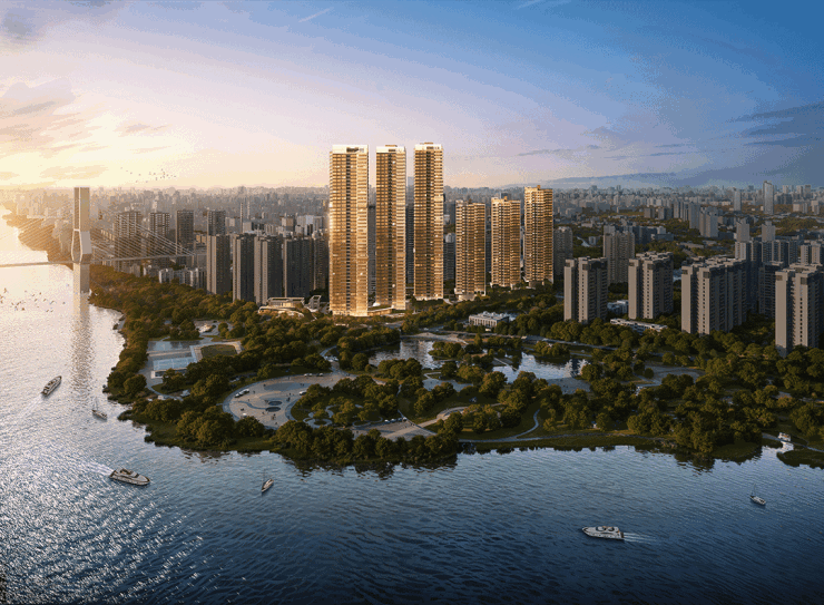 对比此前楼座,6座以更贴近公园的位置与更为开阔的景观面宽,将窗外的东平河与半月岛公园,化作一幅无缝衔接的巨幕长卷。