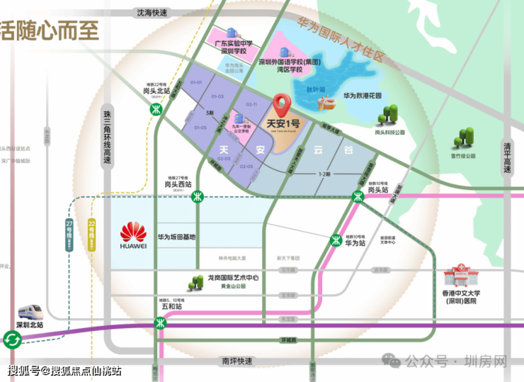 天安1号是位于龙岗坂田街道坂雪岗科技城的“旧改航母”,总体量达400万㎡的天安云谷项目的三期产品(规划分六期开发),也是该项目的首发住宅产品。