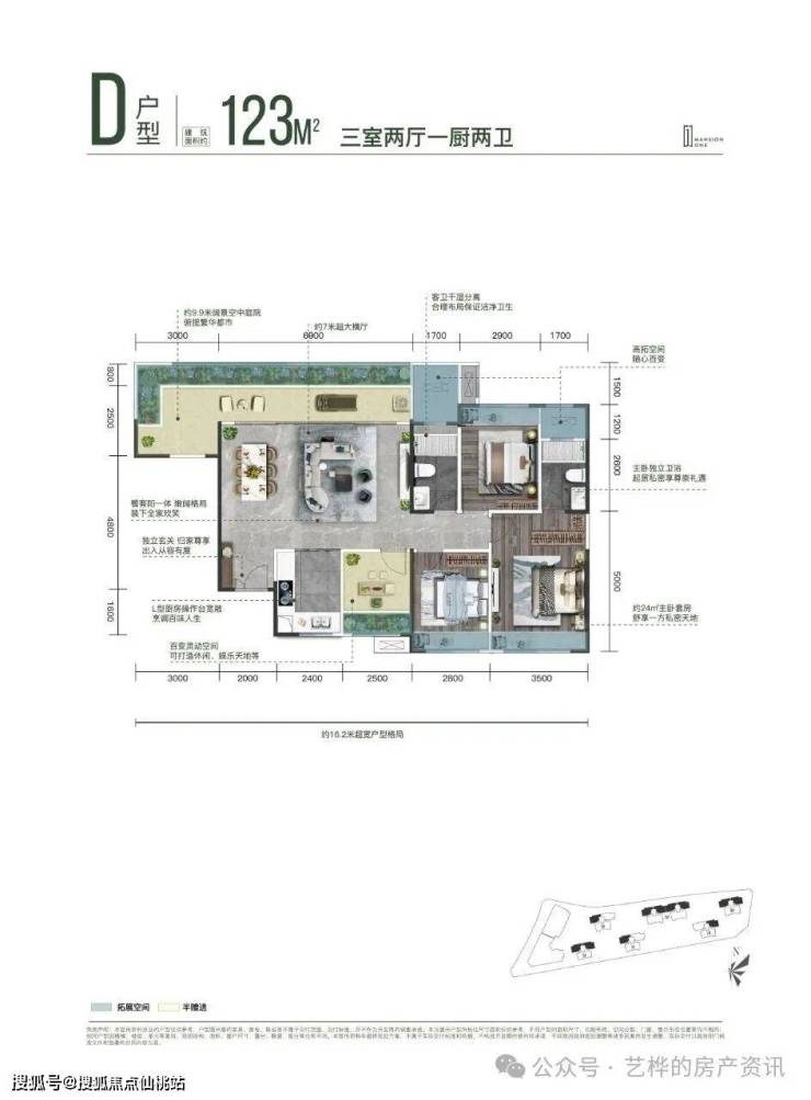 首开2号楼有95㎡2+1房及123㎡3+2房两大户型,几个相当劲爆的看点!