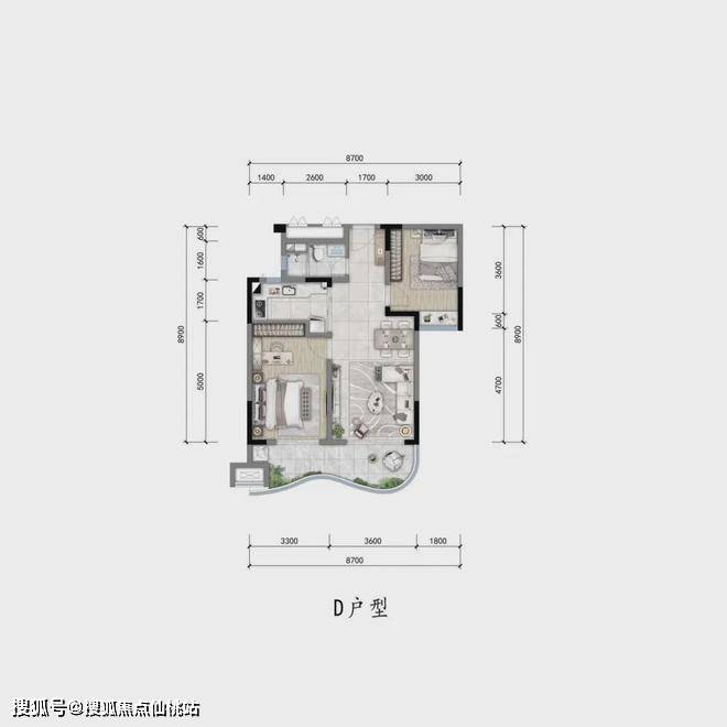[D户型约85㎡两室两厅一卫]