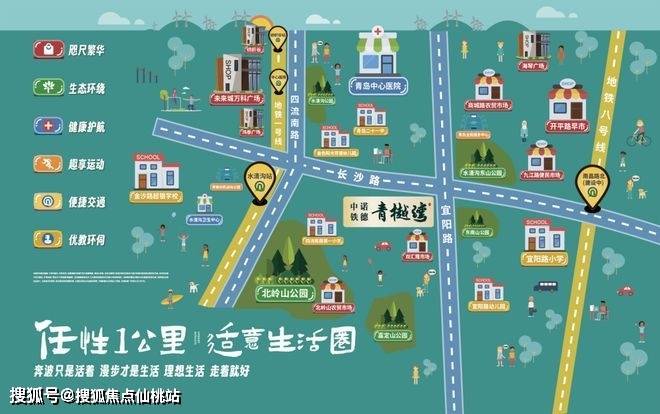 青樾湾,于长沙路上划界黄金1公里。1公里版图内,2大商场,3大地铁,4大公园,5大农贸市场以及幼小初8所学校,勾勒“理想生活,走着就好”的适意。