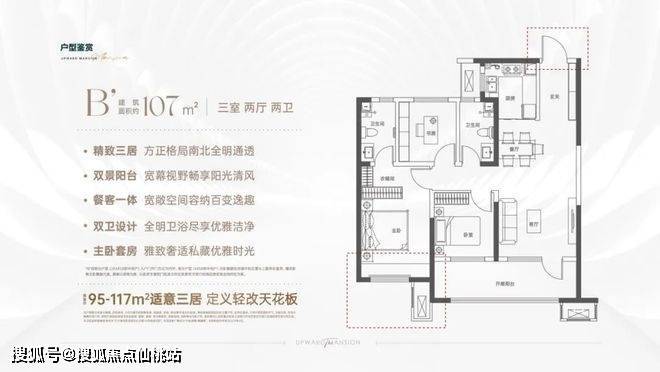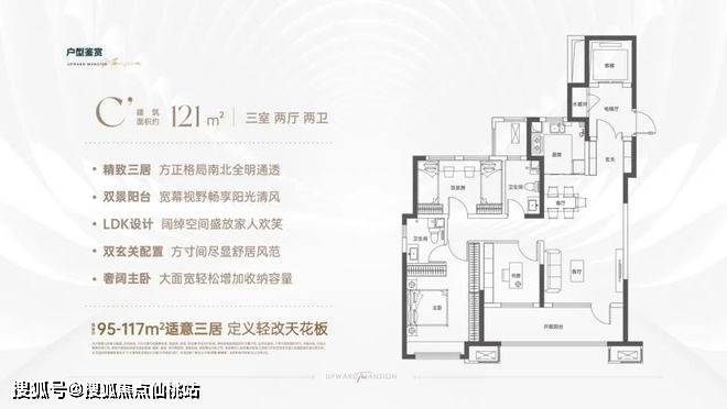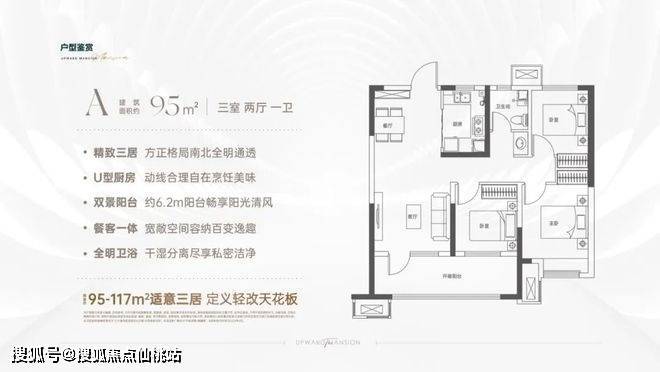 约95-117㎡适意三居,户户方正通透,奢享最宽约6.7米南向双联宽景阳台。卫生间采用干湿分离的经典三段式设计,独立盥洗功能,既私密又实用。部分户型高配“一梯一户”,私享尊崇电梯厅。开敞式宽幕阳台/奢华飘窗/部分电梯厅等三重空间赠送,打造百平三居价值天花板。