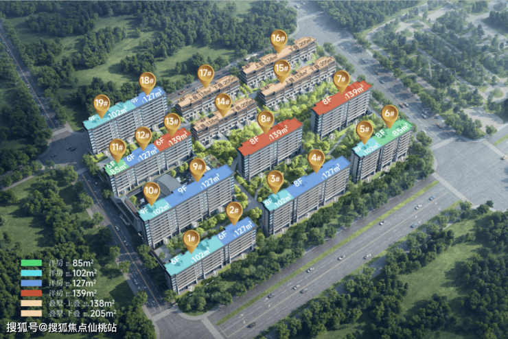 产品户型上,洋房以102m²~139m²纯改善户型为主,点缀少量85m²精致两室,叠拼仅56套,面积138m²~205m²,更是板块内当仁不让的改善天花板产品。