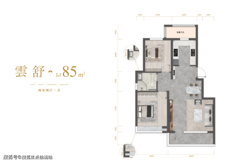 约85平米的小户型,客厅开间也能达到约4.8米。