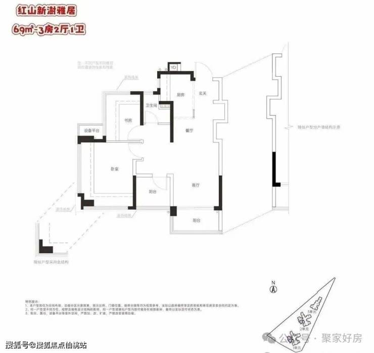 龙华红山,联发新澍雅居预计2026年一季度取证入市,户型相当炸裂,面积有69平的2+1房1卫,79-82平的3房2卫,99平的4房2卫户型,共332套房源,价格方面可以参考附近前期入市的联发臻著雅居,备案均价7.3万/㎡,当时折后均价约6.4万/平,期房精装交付,目前营销中心暂未开放,户型图供参考。