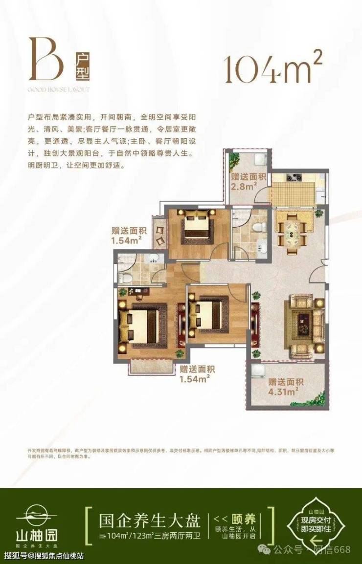 产品户型:104/123㎡三房两厅