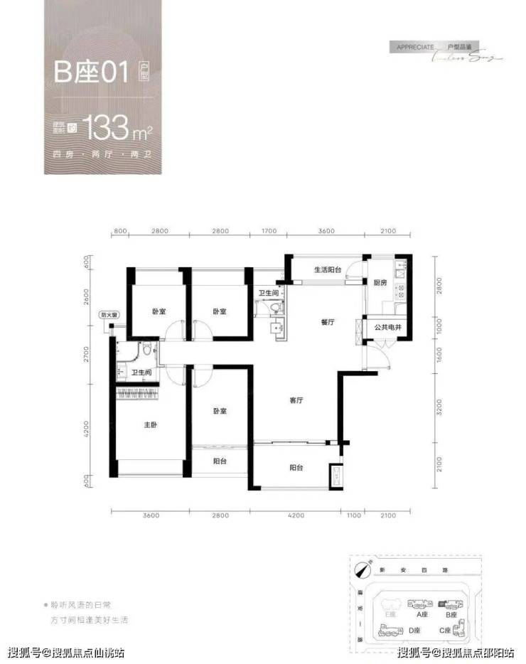 【梯户比】A-C座2梯4户,D座2梯5户