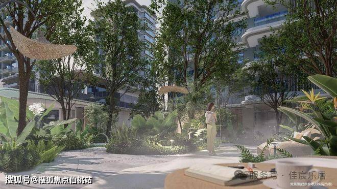 甄选百余种热带花果树木,演绎返璞归真之美。林下休憩空间,嵌入沙坑、叠水与丛林,在自然而然间回归生活本真。