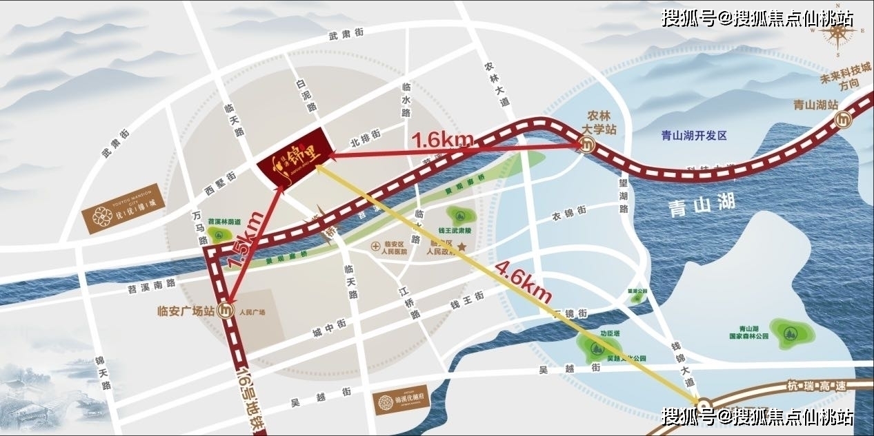 两铁:杭临轻轨(地铁16号线)——临安广场站距项目约1500米,杭临城际高铁——距项目约6公里