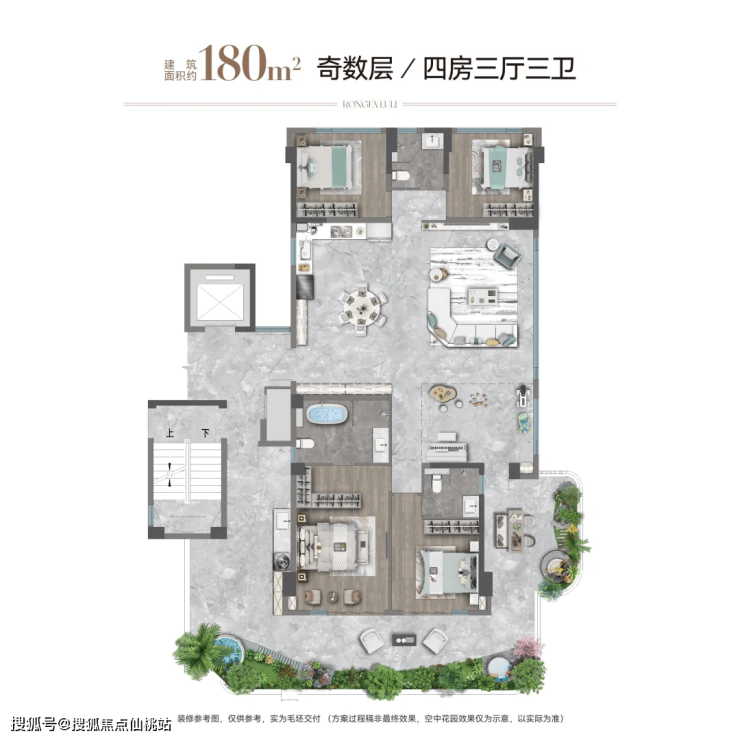 与主流平层产品形成鲜明差异的是,榕发·麓里打造了"空中花园"生活解决方案,实现户户拥享私家庭院与独立花园,以"有天有地有院落"的稀缺形态,重新定义高端人居美学。