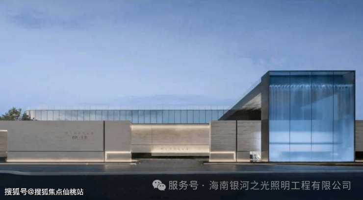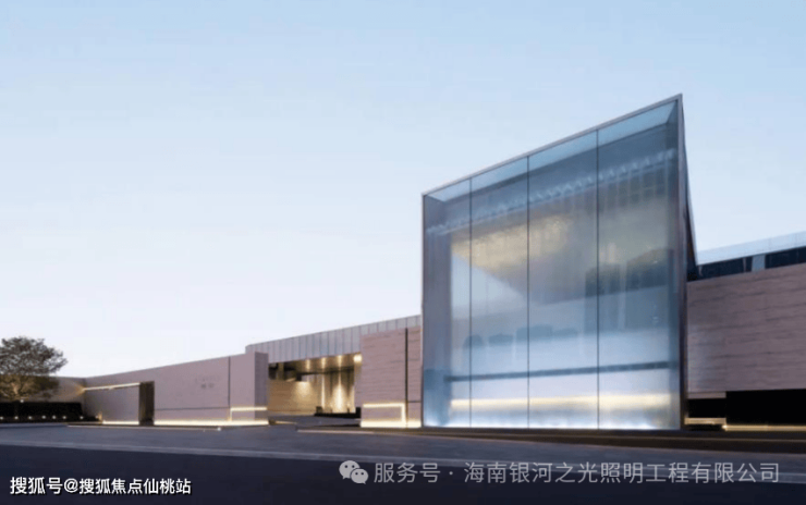 展示区由浅白色石材搭配蓝色玻璃幕墙,形成对比,增强视觉效果。设计风格简洁现代,无过多装饰,通过体块的凹凸、叠级、穿插为形体手法,形成佛山保利天瓒的特有细部纹样,使得整个项目在视觉上呈现出一种独特的文化交融之美。