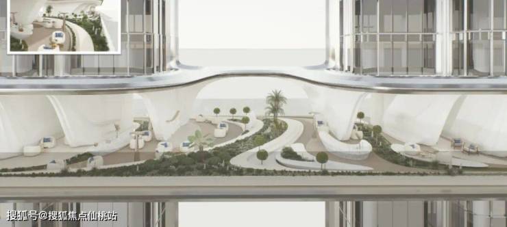 如何用住宅业态,做出足以代表城市的地标?扎哈团队设计了双塔,并把双塔在28层、29层相连,设计出了百米凌空会所。将云端餐吧、艺术展厅、茶室、健身房、瑜伽室等功能汇聚。