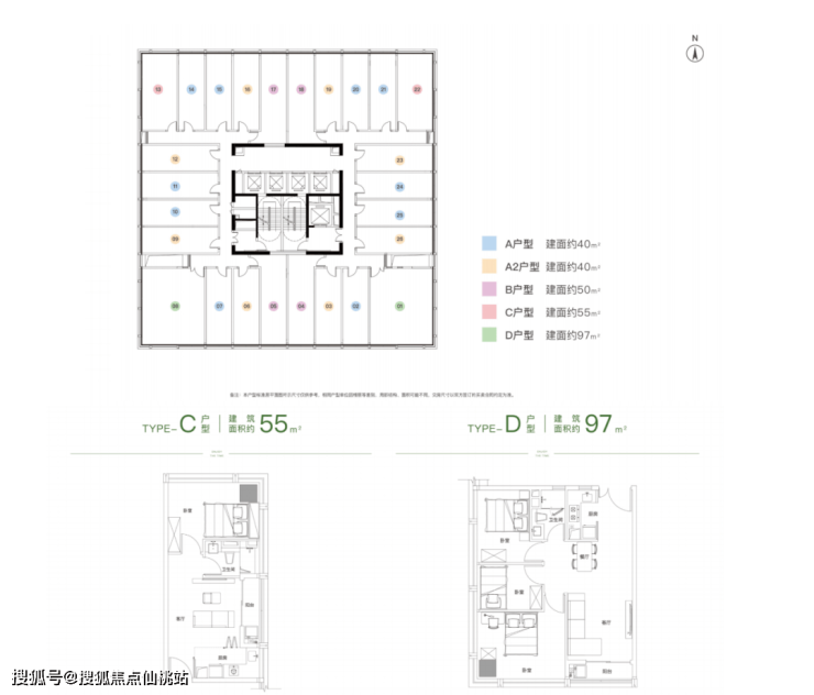 为满足不同家庭结构和居住需求,深业上林苑提供建面约40 - 97㎡的1 - 3房 公寓产品。每一种户型都经过精心设计和优化,注重空间的合理利用和功能的分区,保证了 每个房间都有充足的采光和通风。客厅和餐厅相连,形成通透的公共活动空间,方便家人交 流互动。部分卧室配备独立的卫生间和衣帽间,厨房和卫生间设计人性化,操作台面宽敞, 收纳空间充足。