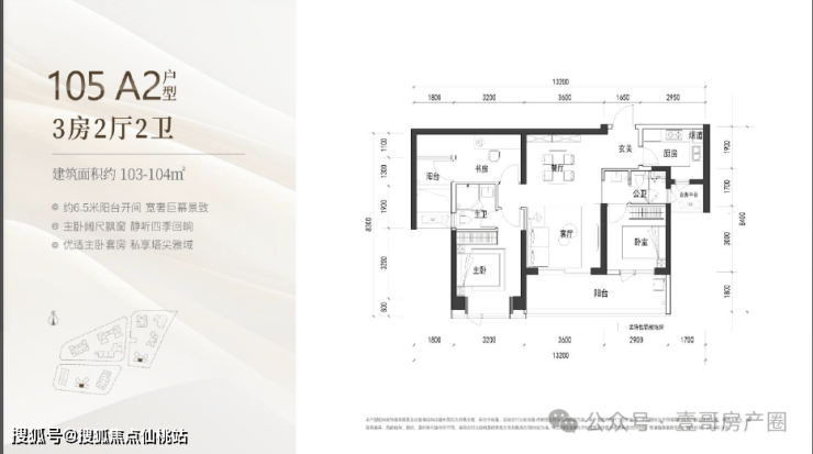 本次首推的 02 地块 105 ㎡产品有 4 条腿,户型有这个双龙抱珠的,还有一个户型是竖厅格局,各有优势,看个人喜好选择。