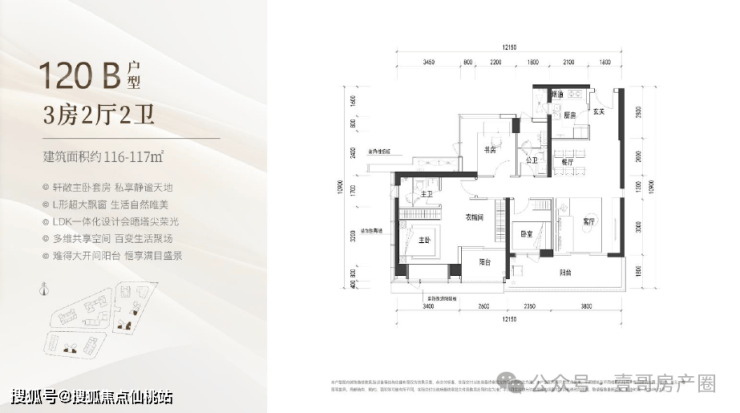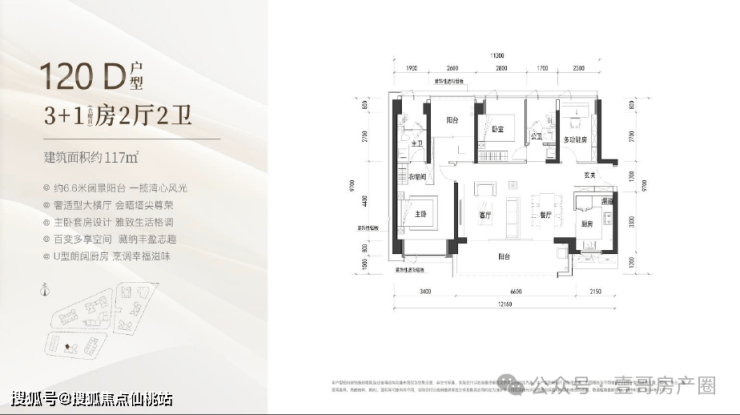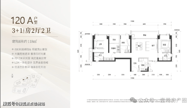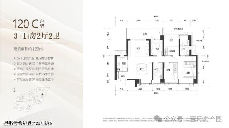建面约120㎡的3+1房2厅2卫,