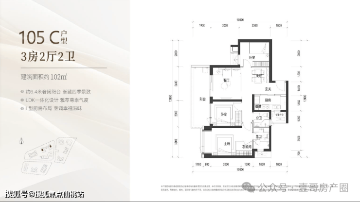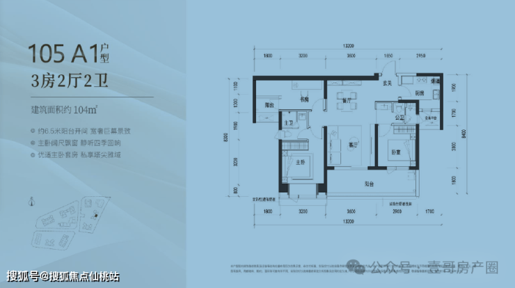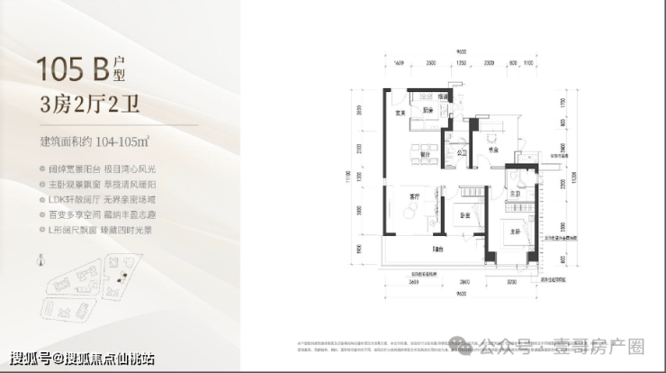 建面约105㎡的3房2厅2卫